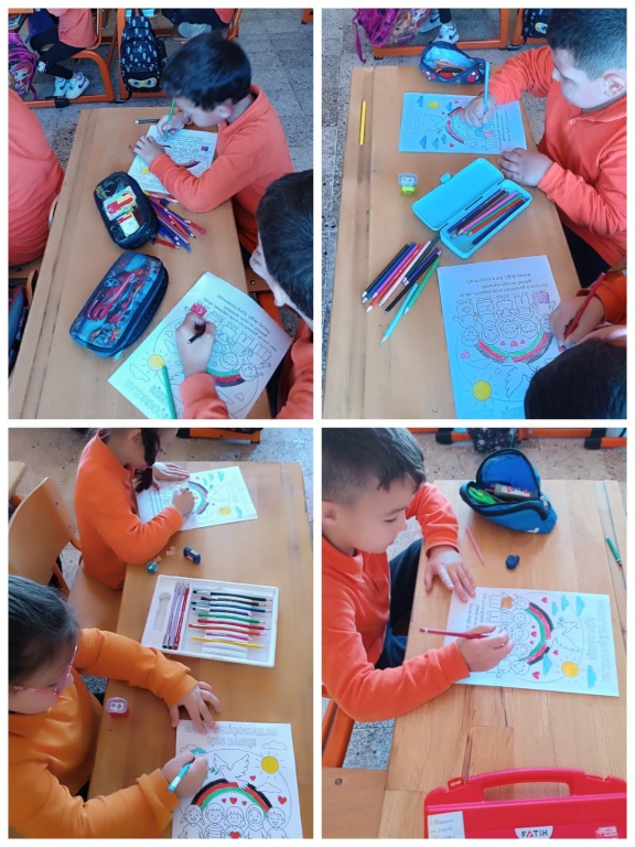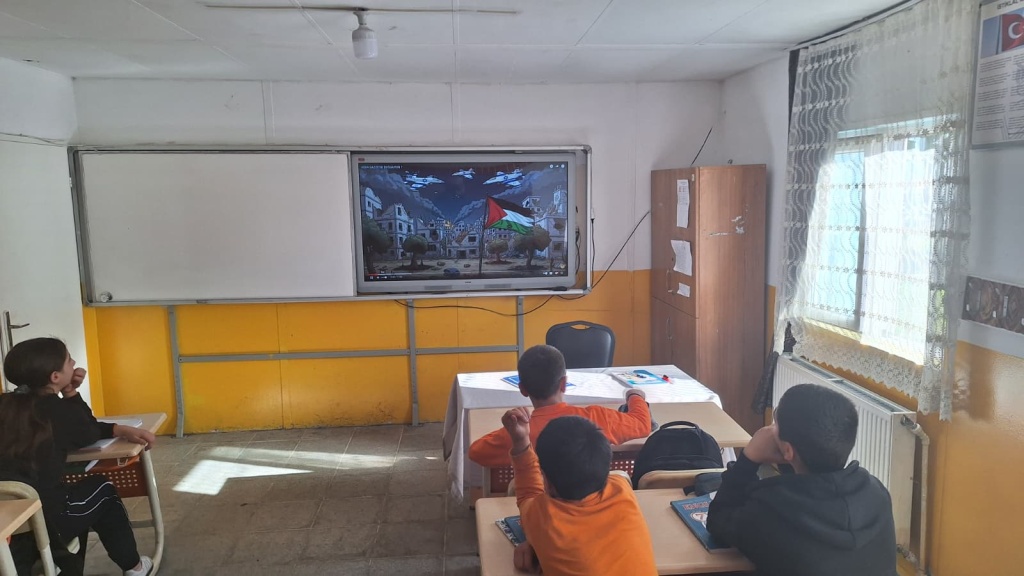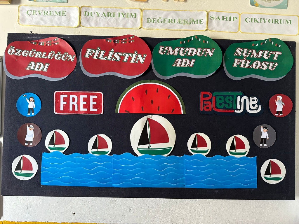 Okulumuzda Türkiye’deki tüm okullarla eşzamanlı olarak Filistin ve Gazze temalı farkındalık etkinlikleri öğrenci ve öğretmenlerimiz tarafından boyama, pano, görsel , video, resim gibi farklı etkinlikler yaparak Filistin’deki insan hakları ihlallerinin sona erdilirilmesi amacıyla gerçekleştirdiler.