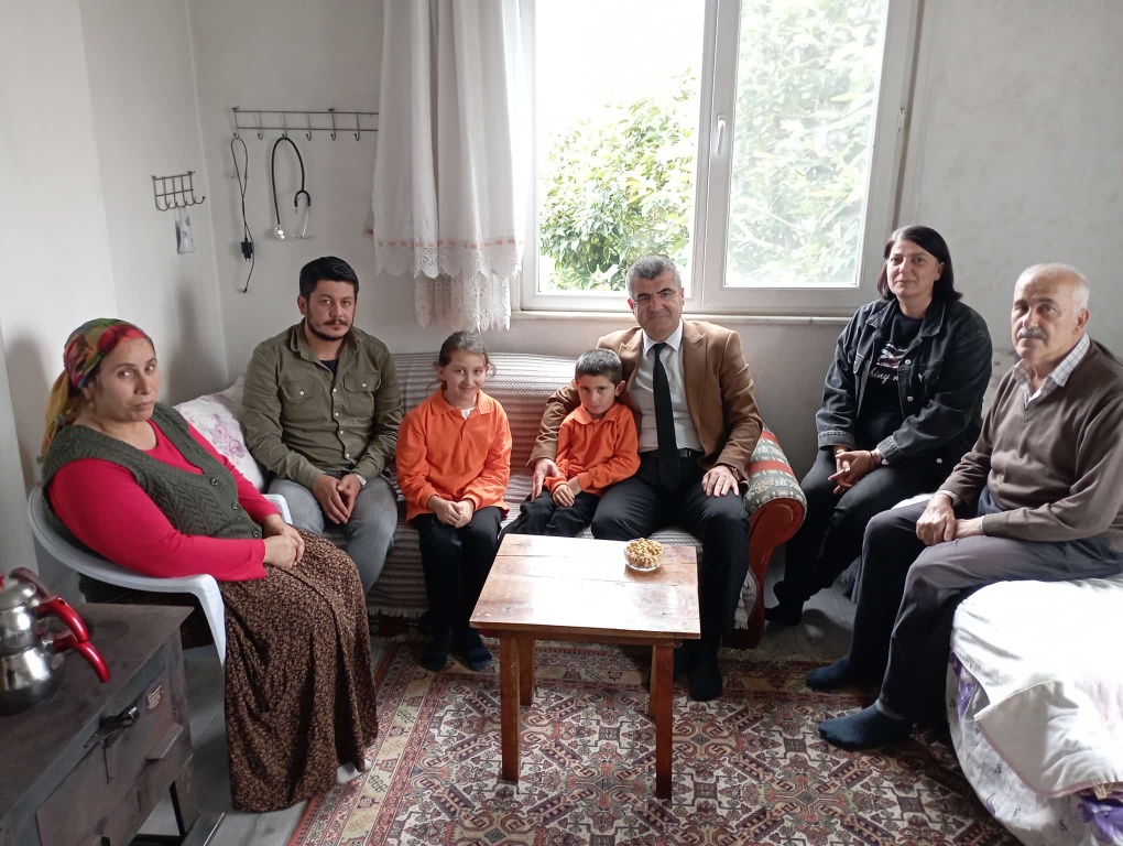 İlçe Milli Eğitim Müdürümüz Sayın Salih BAŞ’ın katılımlarıyla okul müdürümüz Onur ŞİMŞEK ve sınıf öğretmenimiz Çiğdem ÇAKMAK tarafından öğrencilerimiz ve velilerimiz ziyaret edildi.